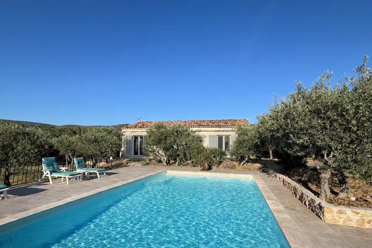 Profitez également des espaces communs : une piscine rafraîchissante avec transat et parasol, un salon extérieur entouré d'un jardin méditerranéen arboré d'oliviers et un terrain de pétanque convivial.